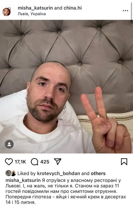 "Я отравился в собственном ресторане во Львове. И, к сожалению, не только я. По состоянию на сейчас 11 гостей сообщили нам о симптомах отравления", – сообщил Кацурин.