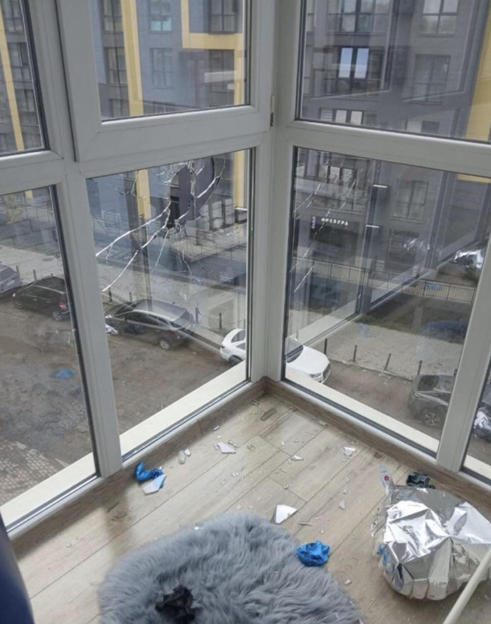 Кроме того, в сети немало фото и снимков разбитых окон не от взрывной волны. Ведь во время работы ПВО по "шахедам" используются специальные пулеметы, и некоторые пули могут попасть даже в окно многоэтажки. Так же произошло и во Львове, где люди после атаки увидели дома пулевые отверстия в окнах. Хотя некоторые из отверстий могут быть следствием применения кассетных боеприпасов и т.д.