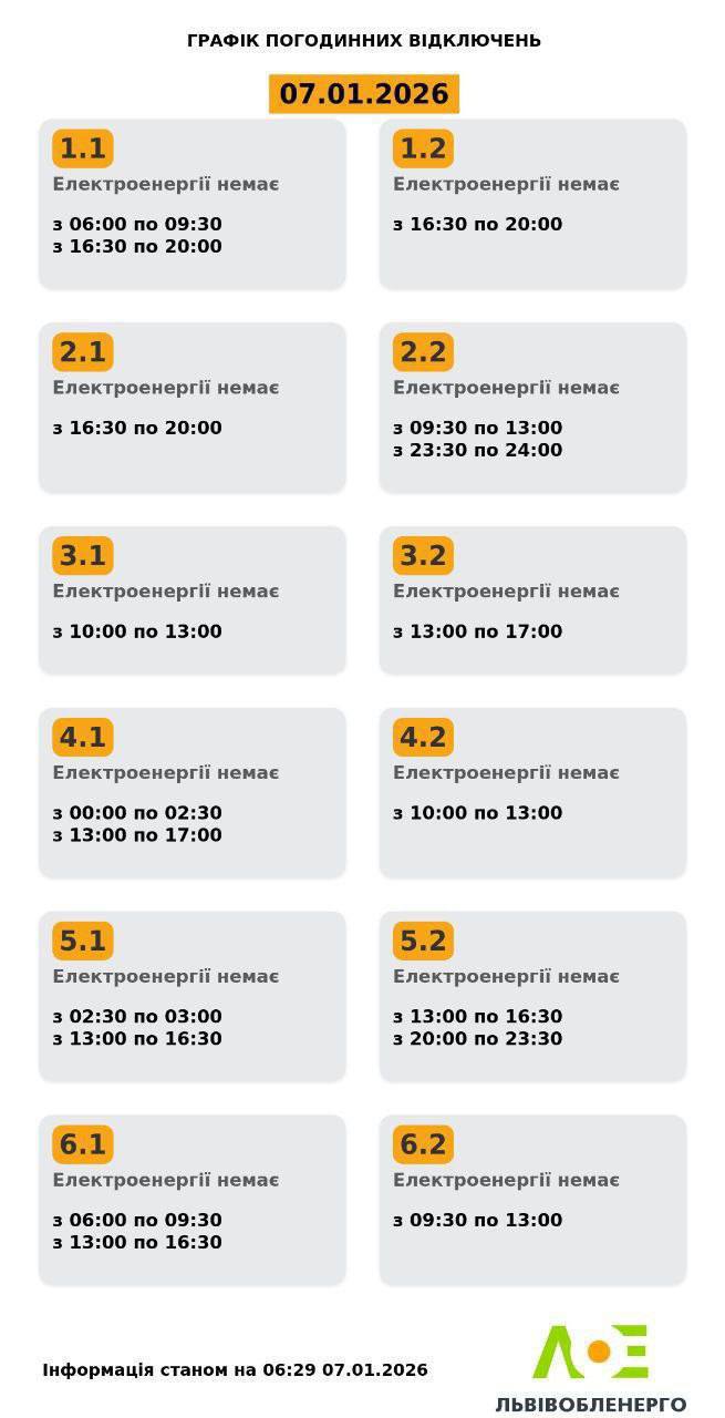 В Облэнерго обновили графики отключений света во Львове и Львовской области на среду, 7 января.
