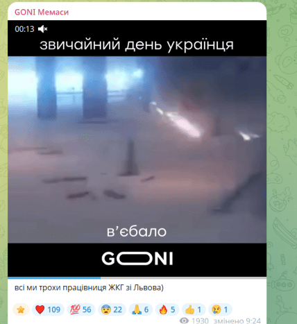 Дворник уже стала героиней мемов. "Обычный день украинца", — так назвали видео в одном из юмористических пабликов в Телеграмме.