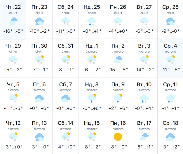Известный синоптик Игорь Кибальчич в комментарии "Телеграфу" сообщил, что уже с 24–25 января в Украину придёт потепление. Тёплый воздух будет поступать с юга — из Турции, Балкан и Средиземноморья. Сначала теплее станет на юге и западе, затем — по всей стране. Уже к последним числам января морозы вовсе уйдут.