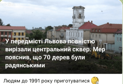 Ведь в сети распространяют фото, где указано, что деревья якобы вырубили, потому что они были советскими. Такая "декоммунизация" наделала большого шума в сети, хотя на самом деле власти вполне логично объяснили свои действия.