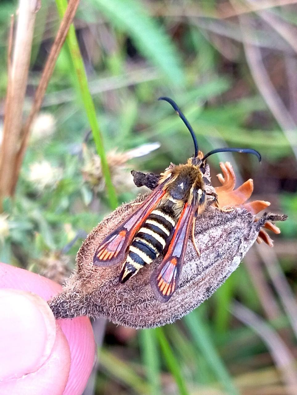 "Кто эта удивительная букашка? Позывала так красиво, не пуглива совсем. Казалось, что это оса, потом поняла, что бабочка", — говорится в сообщении.