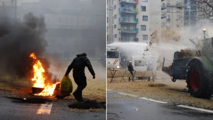 В Брюсселе фермеры жгут шины, а полицейские применяют слезоточивый газ и водометы (видео)