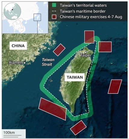 По данным СМИ, Тайвань в ответ на это развернул противокорабельные ракеты. В настоящее время из зафиксировано приближение 33 китайских самолетов и 31 корабля к острову.