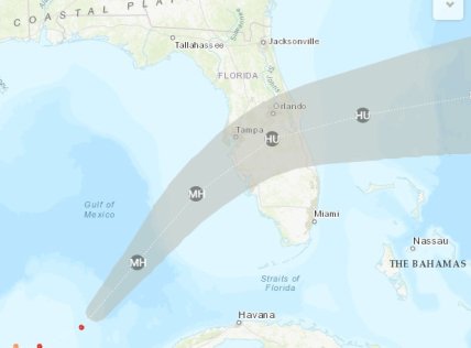 В настоящий момент, по данным AP, ураган Милтон по-прежнему относится к шторму пятой категории (максимальная). Максимальная постоянная скорость ветра у шторма составляет примерно 260 км/ч. По состоянию на 23:00 вторника он находился в 650 км к юго-западу от города Тампа.