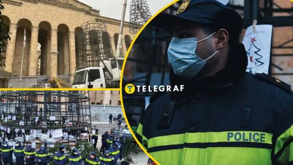 В то же время "Суспільне" сообщает, что грузинские силовики взяли елку в кольцо, чтобы не допустить к ней протестующих. Тем временем активисты развесили на конструкции фото людей, которые были избиты полицией на днях.