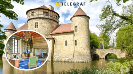 "Круглые башни придают ему средневековый вид, но большие окна обещают светлый интерьер. Немногочисленные дома в деревне обращены ко входу, в то время как другие фасады замка выходят на сельскую местность", — говорится в сообщении.