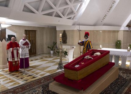 На опубликованном фото Папа Франциск лежит в открытом гробу, одетый в красную мантию с папской митрой на голове и лодкой в руке. Фотография была сделана в часовне Casa Santa Marta – пристройке к Собору Святого Петра в Ватикане, которая служила резиденцией понтифика.