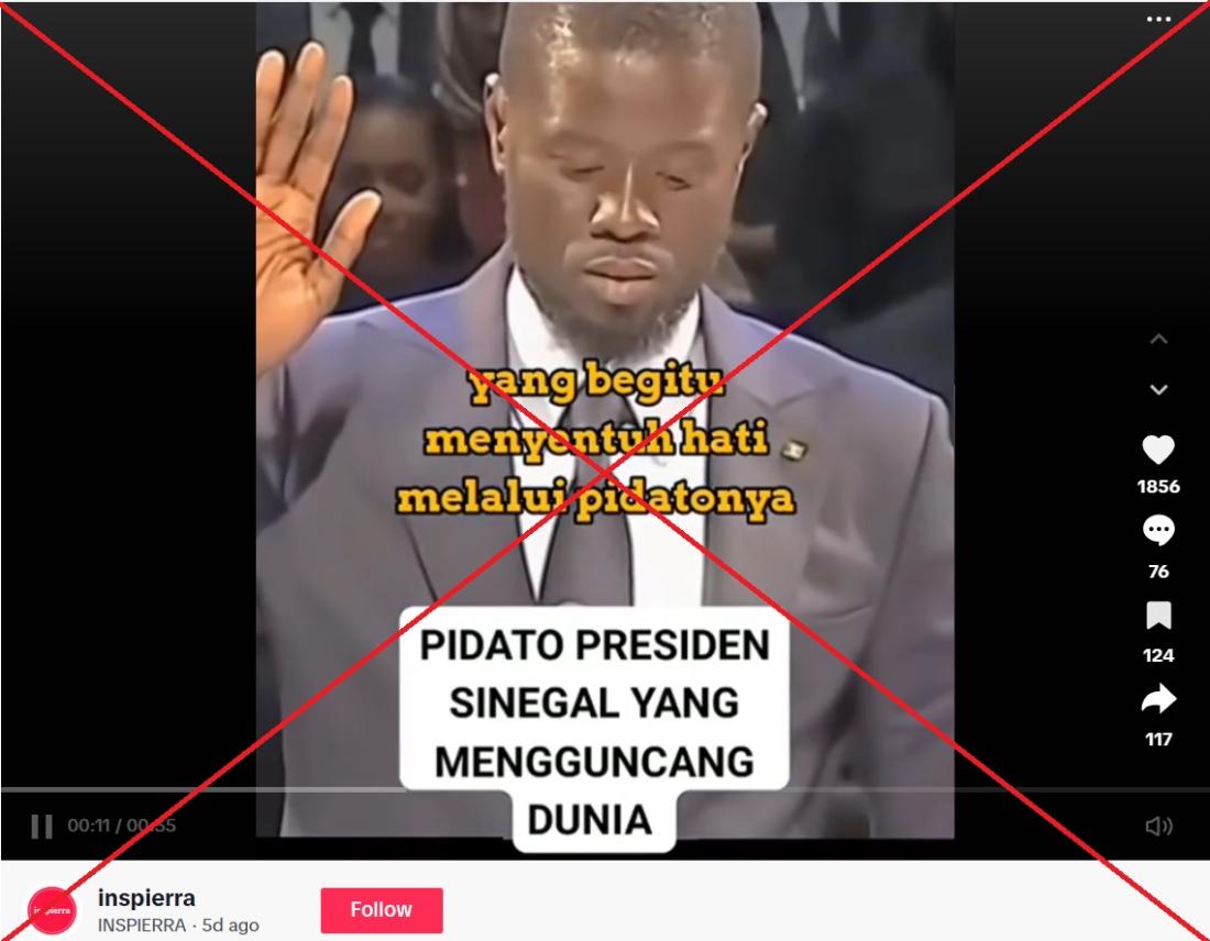 Как сообщает "AFP", в посте на индонезийском языке в TikTok от 11 мая 2025 года, которое просмотрели более 140 000 раз, речь Фая назвали "речью, поразившей мир". Там показали несколько отрывков, якобы из инаугурации молодого президента Сенегала в 44 года.