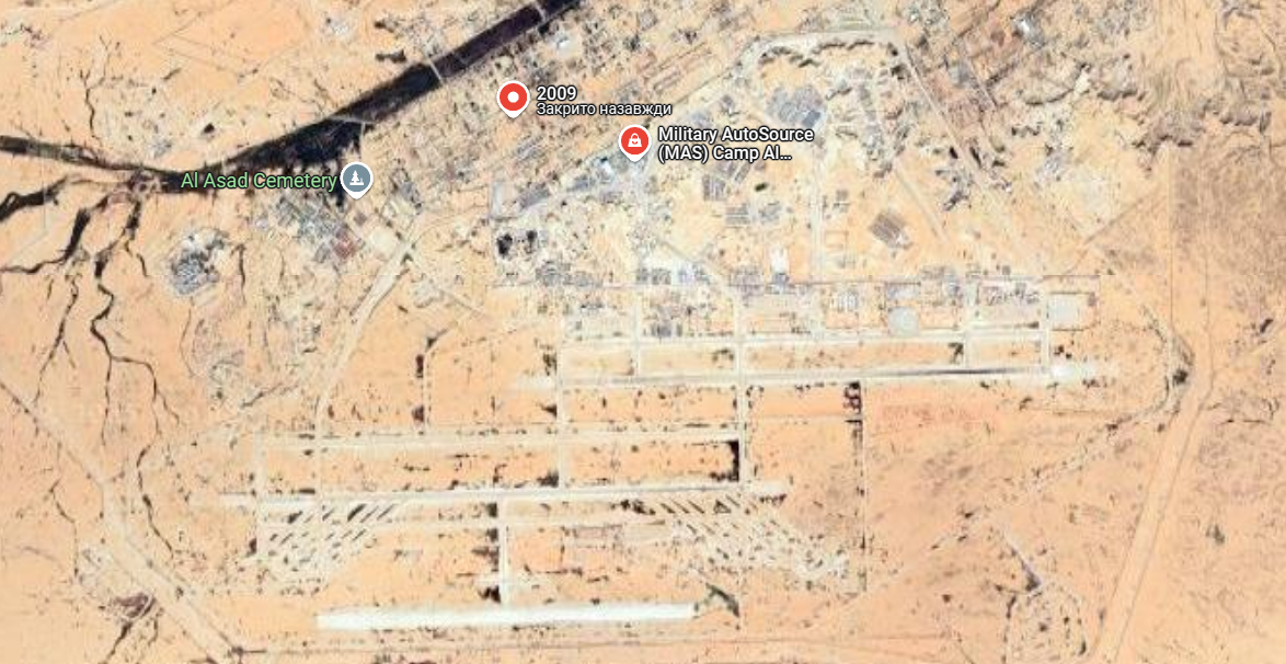 Американская военная база Айн аль-Асад (Al Asad Airbase) в провинции Аль-Анбар (Ирак ) остается одной из важнейших опорных точек военного присутствия США в регионе. Расположенная в 180 км к западу от Багдада, база занимает площадь 27 кв. км и имеет две взлетно-посадочные полосы и более 30 укрепленных ангаров.