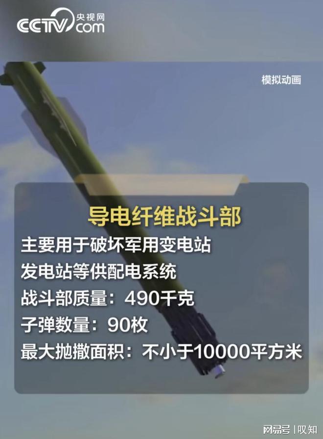 На скриншоте выше написано, что "боеголовка с проводящими волокнами" используется для выведения из строя военных подстанций, электростанций и других систем электроснабжения. Ее масса составляет 490 килограммов и она оснащена 90 суббоеприпасами, которые способны покрыть территорию в 10 000 квадратных метров.