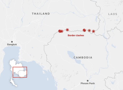 Известно, что 24 июля вдоль спорной границы начались столкновения между тайскими и камбоджийскими силами. Камбоджа обстреляла тайскую армейскую базу в районе близ древнего храма Та Муэн Тхом.