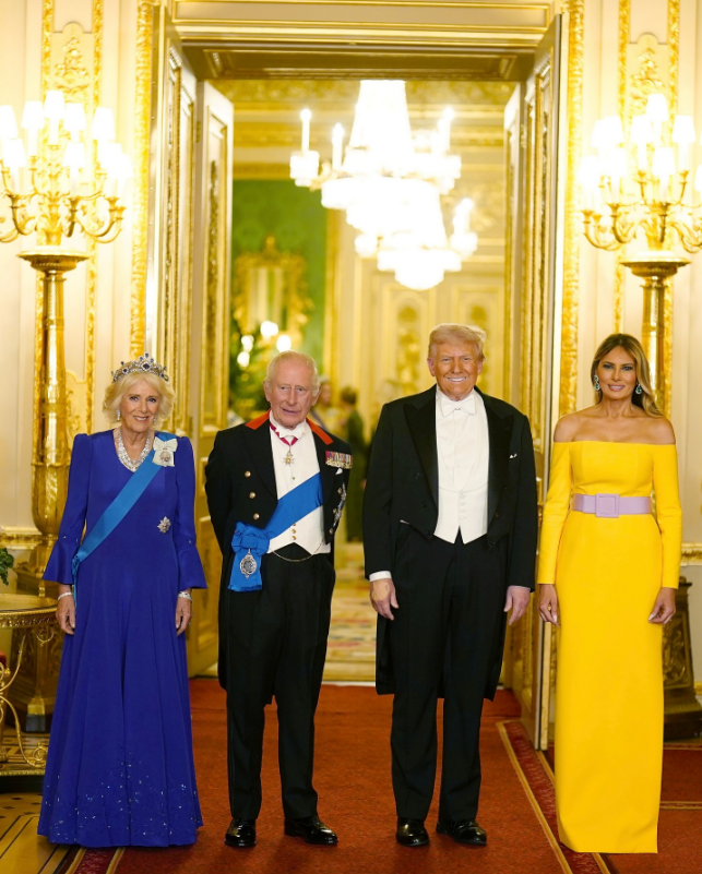 Во время визита Дональда и Мелании Трамп в Великобританию и их встречи с королем Чарльзом III и его женой, заметили интересную и очень выразительную деталь. Первая леди США и королева-консорт Великобритании Камилла символически поддержали Украину, выбрав платья в цветах украинского флага.