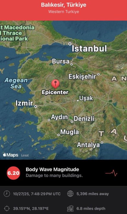 - Одна из провинций Турции – Балыкесир – пострадала от стихийного бедствия, еще несколько почувствовали афтершоки