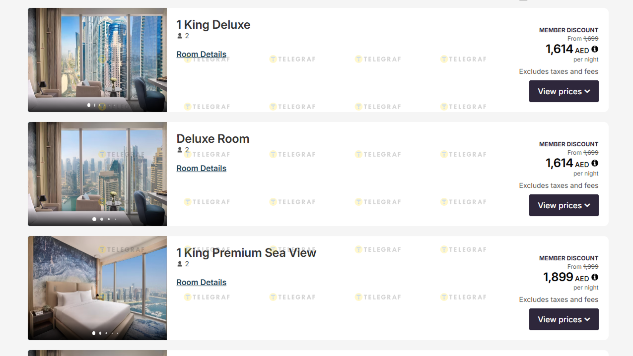 Самый дорогой номер Люкс с одной спальней и кроватью размера "king-size" стоит 2,612 AED или примерно 30 038 грн. Сюда входят номер 60 кв. м, услуги дворецкого, минибар/холодильник, ванная с душем, отдельная гостевая туалетная комната, панорамные виды, окна от пола до потолка, 55-дюймовый телевизор, премиальные удобства: доступ к лаунжу, включая завтрак, послеобеденное чаепитие и коктейльный час, и доступ к пляжному клубу Soluna.