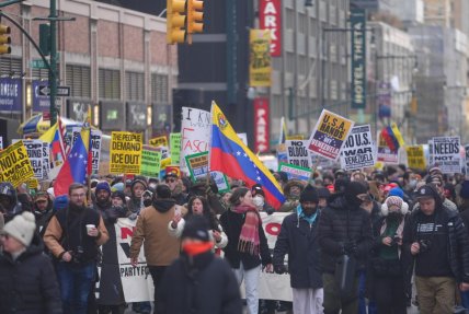 10:00 В США вспыхнула волна протестов после операции Трампа в Венесуэле. Множество людей с плакатами "Нет войне в Венесуэле" и "Нет крови за нефть" собрались у Белого дома.