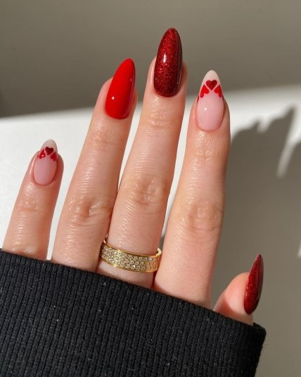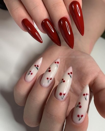 Можно легко создать выразительный френч, нарисовать цветы, сердечки, добавить игривые линии или использовать другие цвета. Кроме того, красный маникюр — отличная идея для тех, кто устал от нейтральных оттенков.