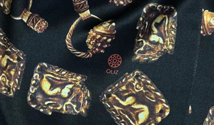 Коллекция получила название "Сарматское золото". Все платки имеют изображение древних украшений из разграбленного в 2022 году Херсонского областного краеведческого музея. На них можно увидеть уникальные аксессуары, найденные учеными в древних погребениях скифов, сарматов и гуннов.