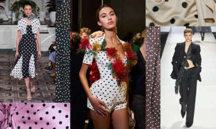 Гороховый принт на пастельных платьях из вспененного шелка придает им вид конфетти на дне рождения. В 2024 году модной является классическая интерпретация этого узора — горошек и точки, размещенные на одинаковом расстоянии, не слишком мелкие и не слишком большие, представленные в контрастных черно-белых сочетаниях. Этот стиль воплощен в коллекции Balmain, а также на подиумах Yohji Yamamoto, Carolina Herrera и Altuzarra в виде костюмов, романтических юбок и топов.