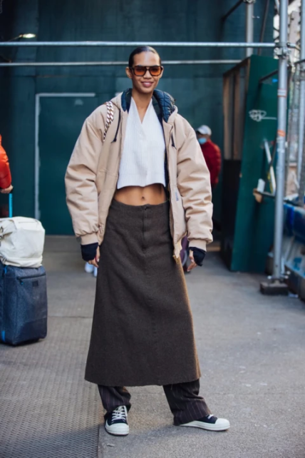 Этот вариант пришелся по вкусу множеству модниц в 2010-х годах. Streetstyle-знаменитости охотно тестируют их в своих образах. Согласно недавним отчетам, число запросов по тренду "юбка поверх штанов" увеличилось почти на 40 процентов.