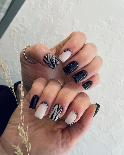 Мода на анималистические узоры крепко укоренилась в трендах маникюра, и весной 2024 года особое внимание модниц уделено принту зебры.