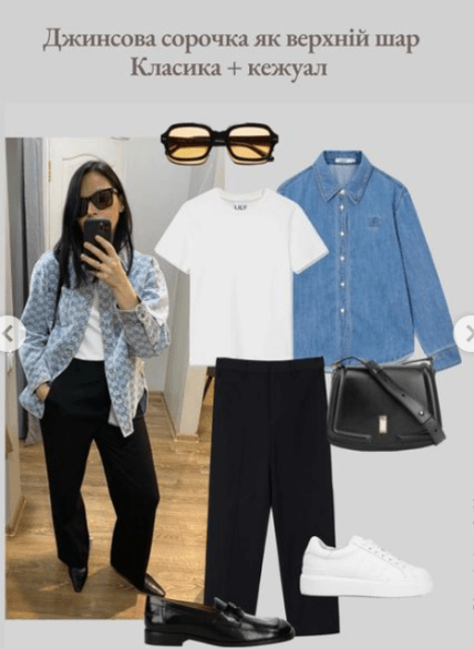 Также важны обувь и аксессуары. Для идеальной капсулы нужны классические белые кроссовки, чёрные лоферы, широкие очки и базовая сумка.