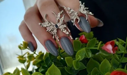 Популярным вариантом для каменного маникюра является темный, графитовый оттенок серого, с легким намеком на синий. Этот оттенок придает ногтям яркость, стиль и оригинальность.