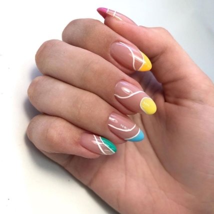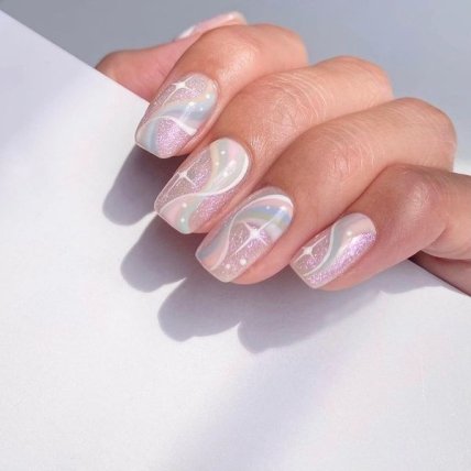 С наступлением тепла возвращается популярность дизайна ногтей с волнами. Весной его можно олицетворять в оттенках пастельных цветов и сочетать с классическим французским маникюром по желанию.