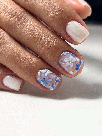 Красивый маникюр с цветочным дизайном не смотрится скучно и делает руки по-особому красивыми и нежными. Он будет точно привлекать внимание и вызывать восхищение. Такой маникюр прекрасно дополнит весенние образы и сделает простые однотонные аутфиты более яркими.