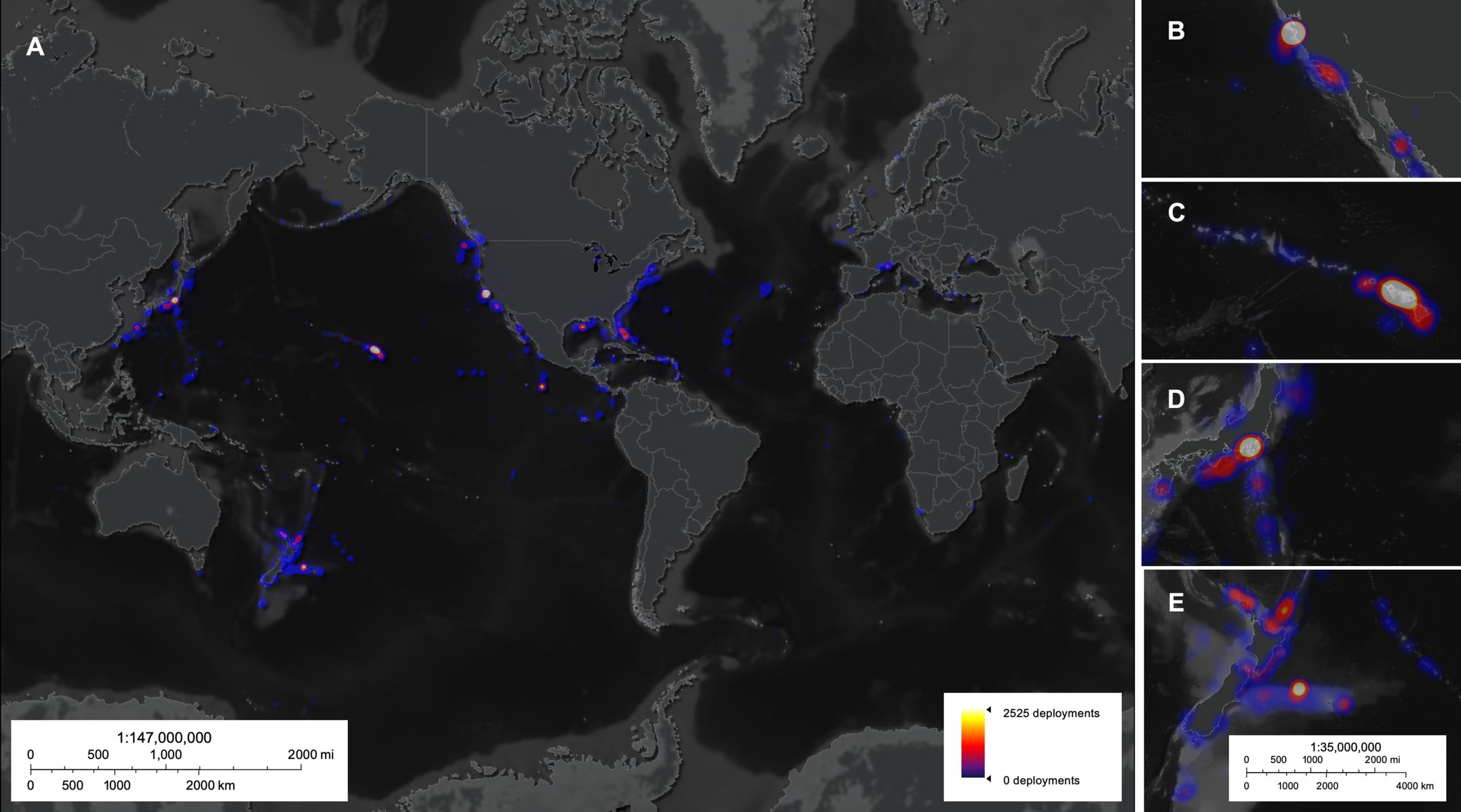 Причина тому кроется в наличии возможностей для изучения — 97% всех погружений были организованы США, Японией, Новой Зеландией, Францией и Германией. Из-за этого 65% всех погружений произошли в пределах 370 км от берегов США, Японии и Новой Зеландии. Океан за пределами национальных юрисдикций практически не исследован.