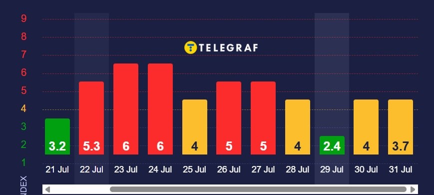 По данным обновленного графика на сайте Meteoagent, который составляет свой прогноз на основе спутниковых систем NOAA, TESIS и научных международных метеорологических лабораторий по всему миру, 29 июля на Земле держится низкая солнечная активность в 2,4 балла. Однако это ненадолго.