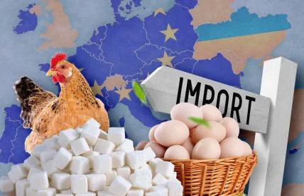 В пятницу, 28 июня, Европейский Союз (ЕС) планирует ввести пошлины на импорт яиц и сахара из Украины. Такое решение принято для удовлетворения требований протестующих европейских фермеров.