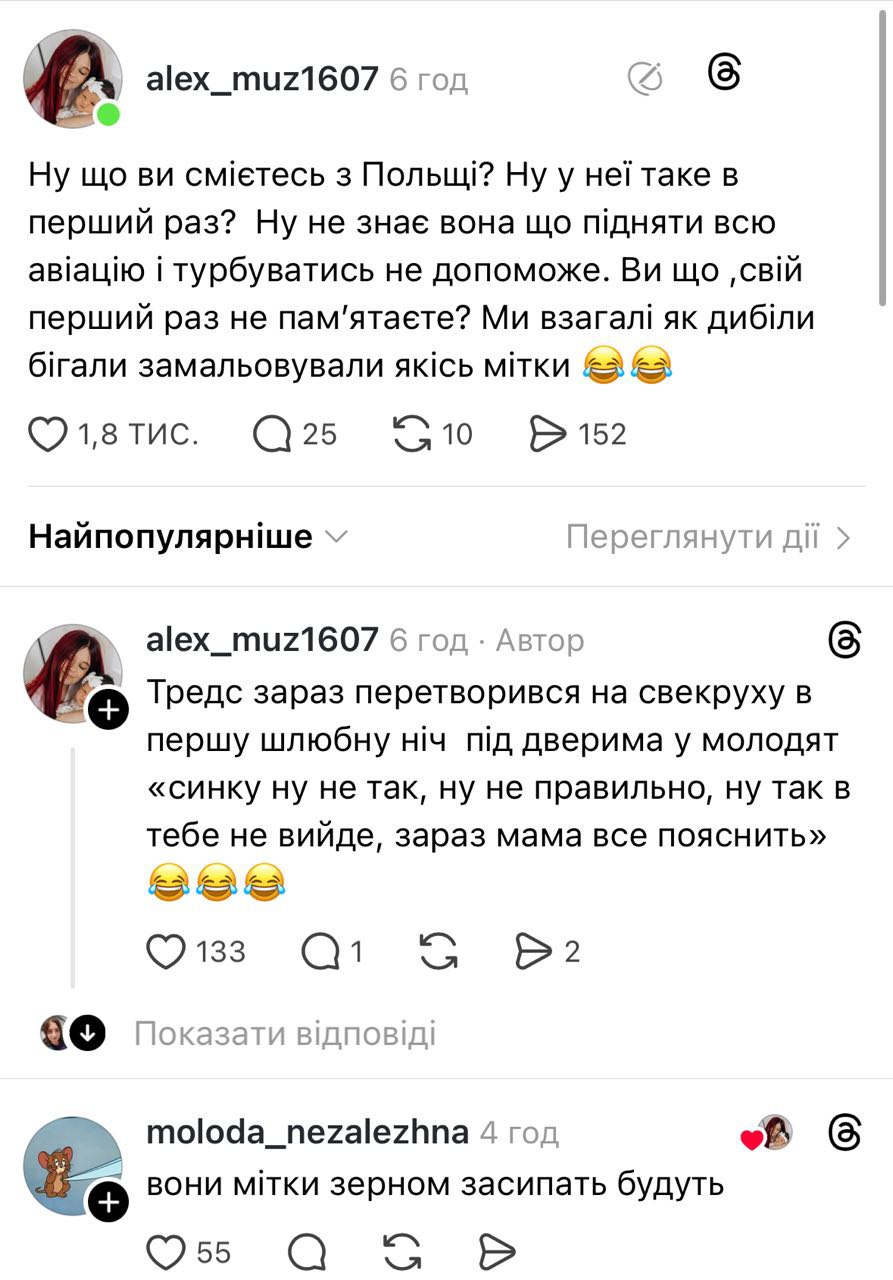 Не обошли и тему того, что для Польши это все в общем-то необычно. Напомним, сейчас в Польше даже такое количество дронов не считают целенаправленной атакой. Украинцы шутили, сравнивая это с первой брачной ночью, а также отмечали, что переживали.