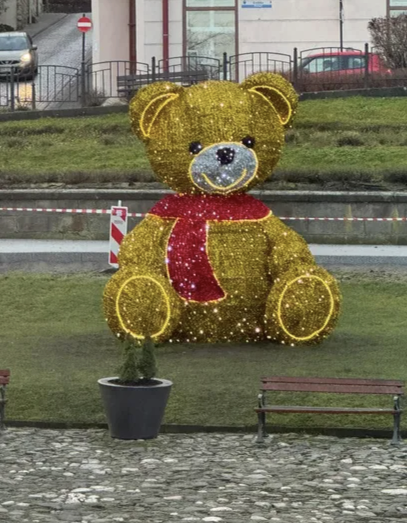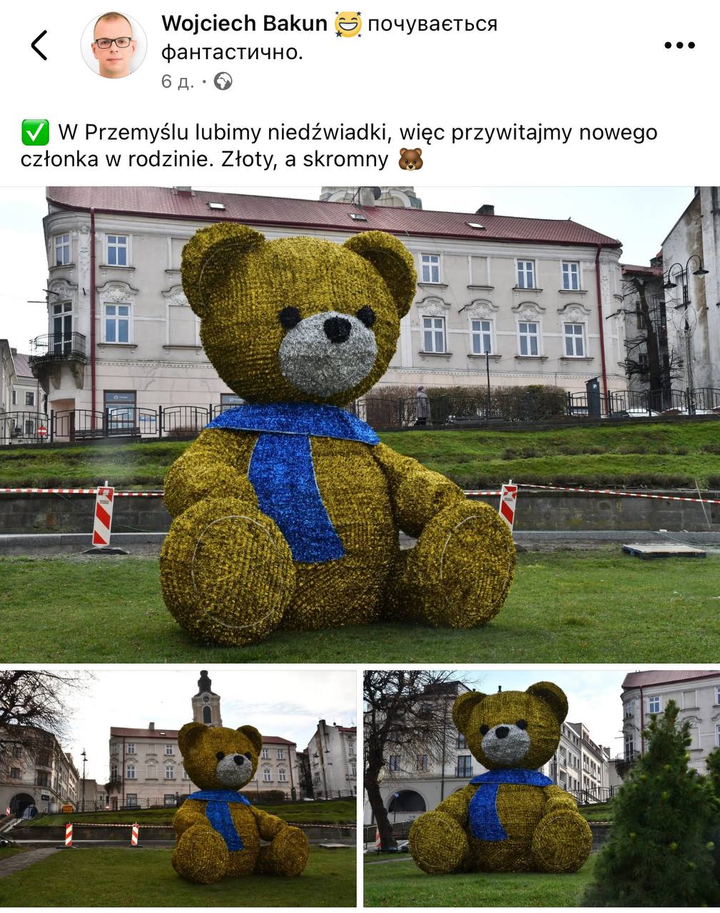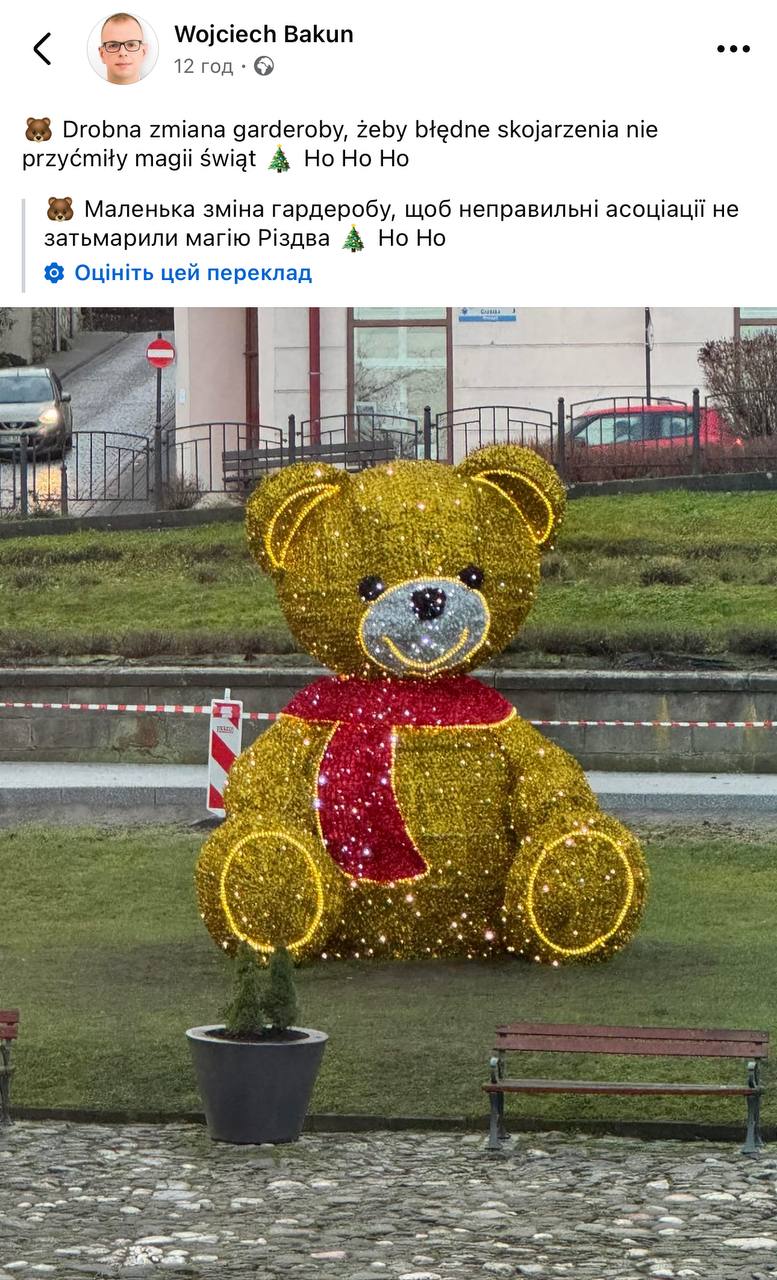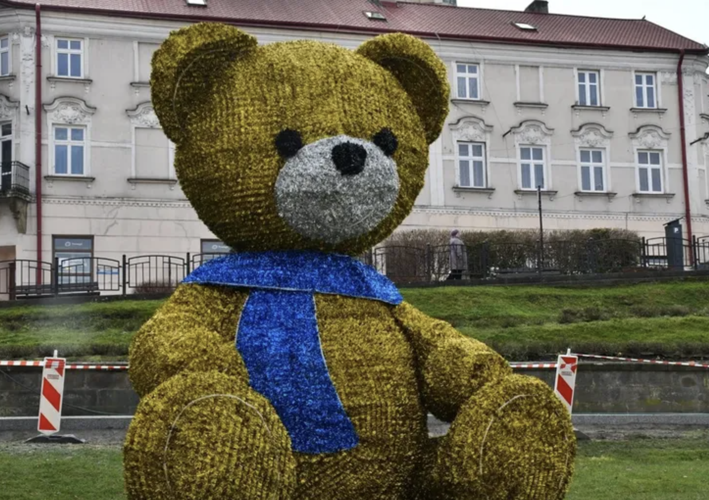 В Польше праздничного мишку "заподозрили" в поддержке Украины: сейчас инсталляция уже напоминает о другом (фото)