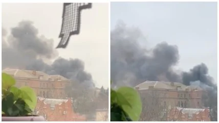 Густой и черный дым поднимается высоко в небо. Об этом пишут местные телеграммы и публикуют видео с места событий.