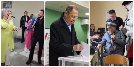 Стартовавшие 15 марта "выборы" президента в России все больше становятся похожи на юмористическое шоу с курьезами, нежели на серьезное мероприятие, где якобы выбирают главу государства. Избирательные участки сегодня посещают российские артисты, которые прямо там и запевают свои песни, будто на концерте.