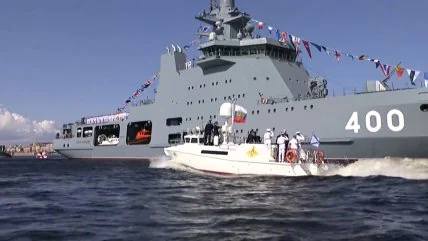 В России прошел традиционный морской парад ко дню ВМФ. Однако журналисты обратили внимание, что там не было ни одного корабля, который, согласно заявлениям украинских военных, был поврежден или уничтожен в 2023 году.