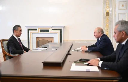 Президент РФ Владимир Путин провел встречу с главой МИД КНР Ван И. Она состоялась под Санкт-Петербургом.