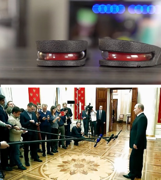 Примечательно, что пынеходы позволяют добавить от 9 до 15 сантиметров к росту. Известно, что в такой обуви нужно ходить буквально на носочках – это и объясняет странную походку российского Путина. Также доказательством того, что российский президент носит специальную обувь для повышения роста, служат десятки видео в сети, на которых это можно заметить даже невооруженным взглядом.