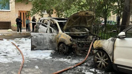 На кадрах из сети заметно, что возгорание произошло где-то снизу, после чего огонь перекинулся на салон, а затем и на автомобиль, стоявший по соседству. Судя по всему, автомобиль восстановлению уже не подлежит.