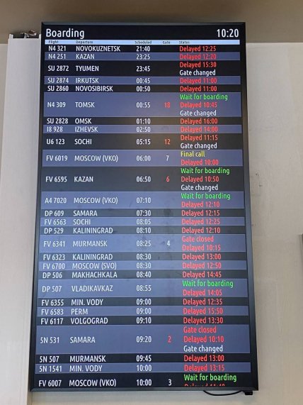 6 июля, по данным росСМИ, в аэропорту Пулково задерживались 57 рейсов, еще 11 вообще упразднили. В московском Шереметьево ситуация не лучше — там были задержаны 27 рейсов и отменены девять.