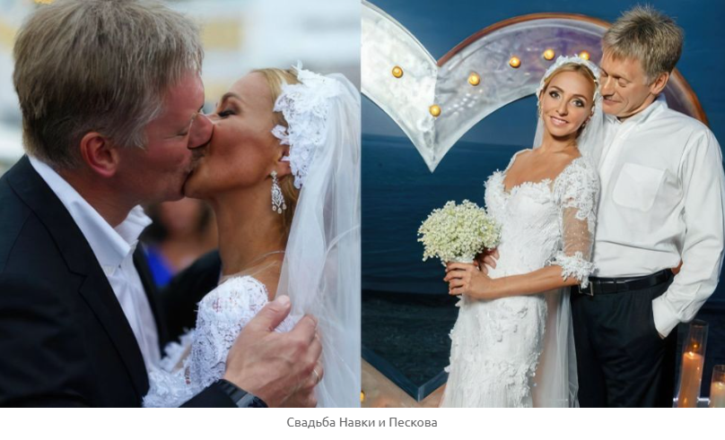 Дмитрий Песков – главный рупор Кремля и личный пресс-секретарь Путина, который 17 октября отмечает 58-й день рождения. Татьяна Навка — бывшая фигуристка и олимпийская чемпионка, родом из Днепра. Они поженились в 2015 году и все это время спортсменка поддерживает мужа и зарабатывает рубли на государственных грантах.