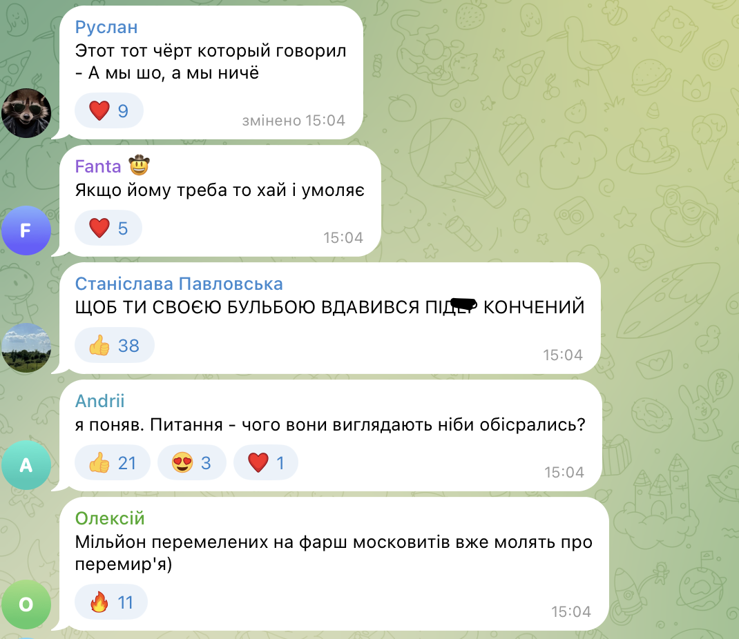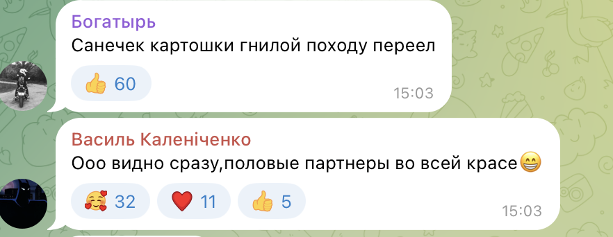В комментариях люди писали, что Лукашенко и Путин — старики, забывшие выпить таблетки и их маразм зашкаливает. Кто-то называл диктатора "старой молью", а о Лукашенко говорили, что он "объелся гнилой картошки". Многие поддержали то, что Россия и Путин с такими требованиями и заявлениями должны идти за российским кораблем. Ведь Украина защищает свои земли от агрессии России и молить о помиловании и мире – последнее дело для украинцев, что-то вроде невыполнимого.