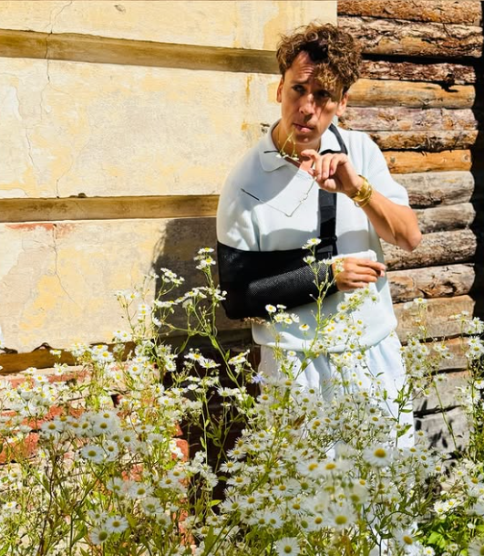 С перебинтованной рукой он выступал на фестивале Лаймы Вайкуле. Однако на новых фото его заметили без кольца. Возможно, его артисту пришлось снять из-за опухлости поврежденной правой руки после операции.