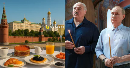 Беларусский пропагандистский Телеграм-канал "Пул первого" опубликовал фото, на котором Путин и Лукашенко, напротив друг друга, сидят за одним столом, устланном белой скатертью. На снимке сложно рассмотреть, какие блюда были поданы президентам. "Телеграф" обратился к ИИ, чтобы выяснить то, что, вероятно, ели диктаторы России и Беларуси.
