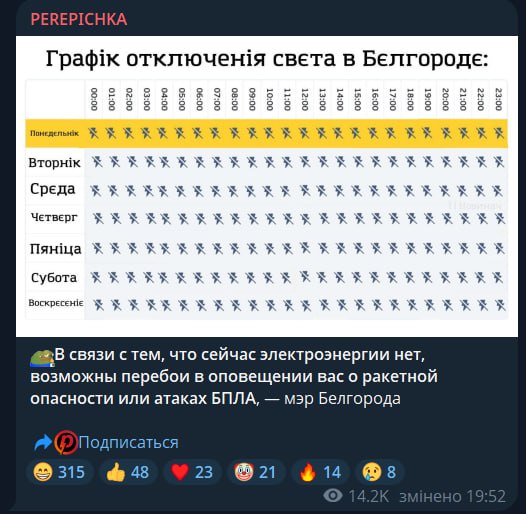 Губернатор Белгородской области Вячеслав Гладков подтвердил удар по инфраструктуре блекаута.