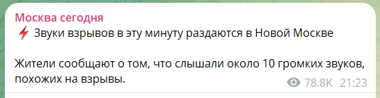 Взрывы слышали в подмосковном Дубно, где расположен крупнейший в России центр по исследованиям в области ядерной физики, в Новой Москве и в районе Коммунарка Новомосковского административного округа столицы РФ.