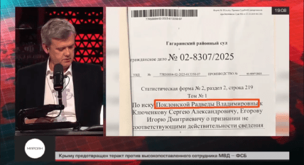 Об этом стало известно из судебных документов — Поклонская подала иск против российских пропагандистов Сергея Ключенкова и Игоря Егорова. Как оказалось, Ключенков, он же Мардан, опубликовал паспортные данные Поклонской и посмеялся над ней в эфире "Соловьев Лайф". Так что свои честь и достоинство прокурорша решила защищать в суде.