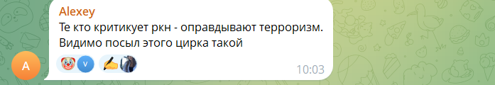- Те, кто критикует РКН, оправдывают терроризм. ВИдимо, посыл этого цирка такой